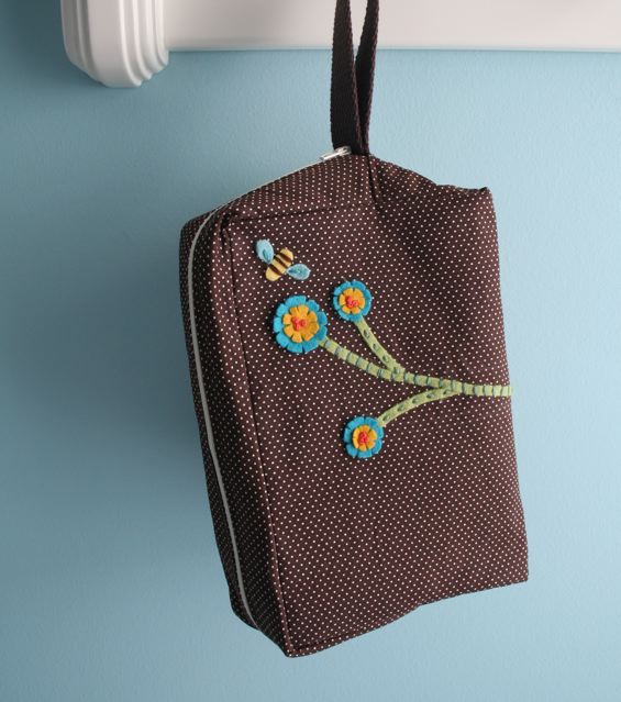 I sewed my first item from my copy of Weekend Sewing by Heather Ross, the little zippered travel bag for my niece Erin. I've had the book a long while so I'm glad this gift gave me the excuse I was looking for to break into its patterns.