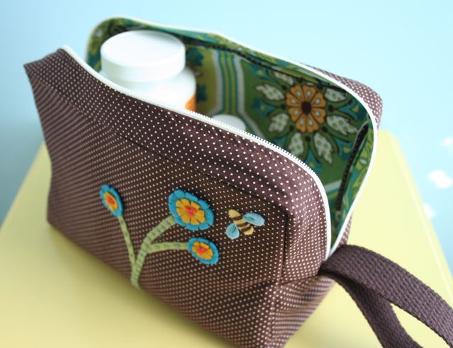 It's a nice sized bag, and would be ideal for a makeup or small toiletries bag. I like how Heather designed it to have no unfinished edges inside, but I think I might just add some bias binding to the inside seams next time and avoid all the turning.
