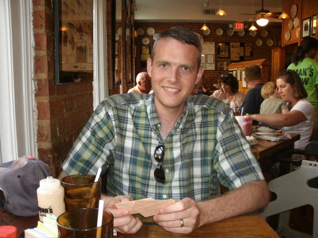 to one wildly popular place to eat. We saw the line of folks stacked up outside every time we walked by, so figured it must be the place to go. Very nice folks, friendly atmosphere, but the food did not inspire. My she-crab soup was way too salty (and this is from Larissa Holland, Salt-A-Holic). Still, I sat in the same seat as Neil Diamond. How many other people can say that? All the walls were three-deep in celebrity photos and signed dinner plates. The pre-dinner offering of slightly smelly boiled peanuts remained untouched. Bleh. I'm southern as they come, but I've never understood the attraction of soggy peanuts.
