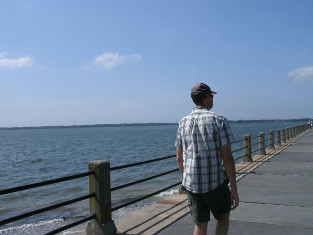 My sweet baboo and I got away recently for a short visit to Charleston, SC. It was a belated celebration of our 15th anniversary. We did it up right and stayed in a foo foo bed and breakfast right by the water, HarbourView Inn (thanks to Sniqueaway). You should have seen our room(s). Room(s) because we were moved from one beautiful room to a beautiful-er penthouse room on the second night, overlooking the harbor with our own balcony. We kept congratulating each other on our good fortune. It was such an elegant building and the service was fantastic (thanks, Drue), but more importantly there were two large glass containers filled with plain and peanut M&Ms at our 24 hour disposal in the lobby. Also there was this lovely smell in the hotel all the time. I asked about it and they said they pipe in special lemon grass aromatherapy. Oooh. Fancy.
