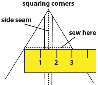 This just in: If you are making my Stem Messenger Bag included in the book Zakka Style, there is a misprint on page 47 in the instructions. The text says to draw a line measuring 3 inches from the point, but it should read 3 inches from edge to edge, like so: