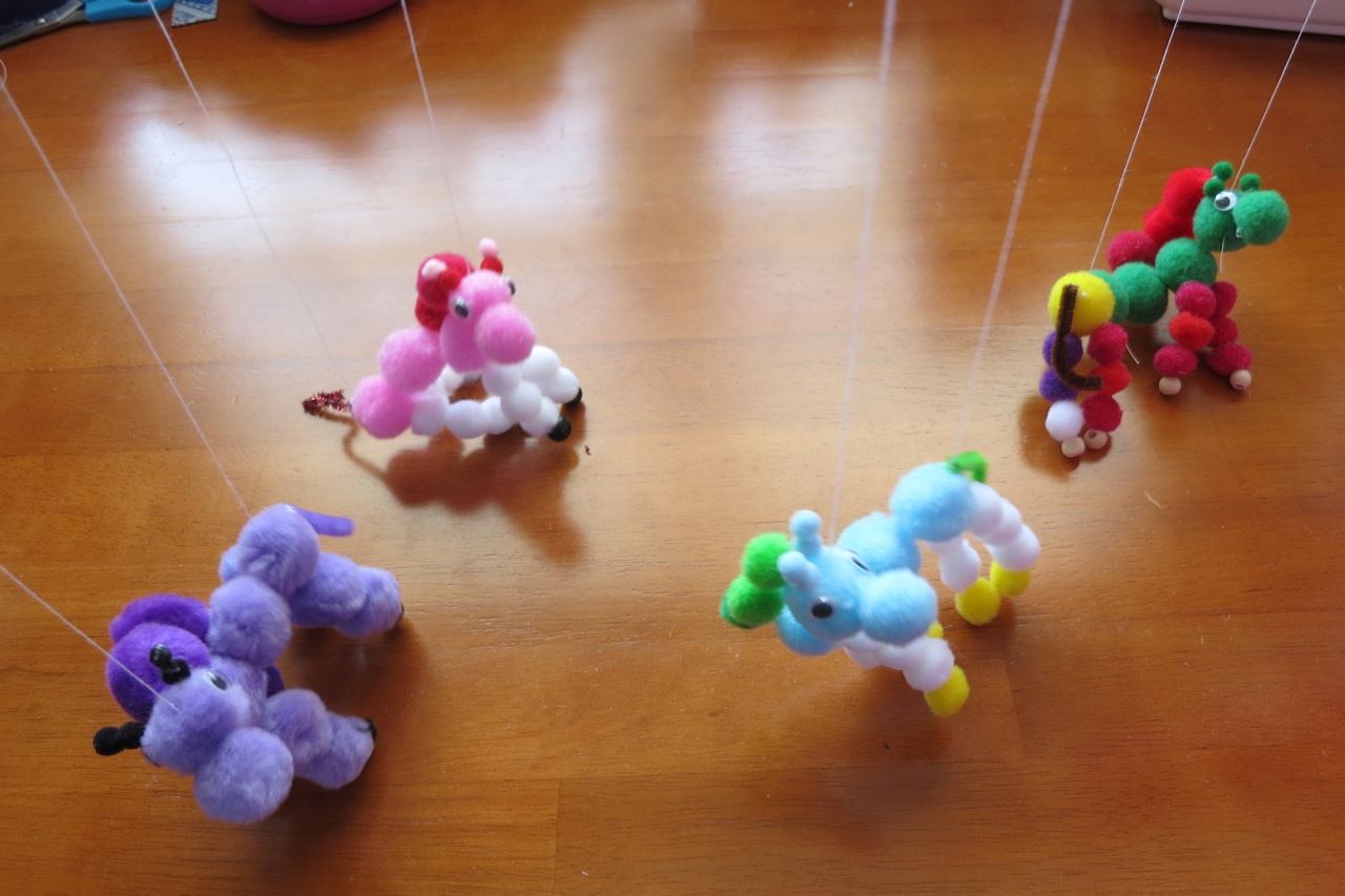 What do you do when you are nine and ten and have a bagful of dollar store pom-poms and googly eyes? You make pony marionettes. All morning.