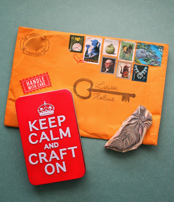 One of my most favorite things -- receiving paper parcels in the mail -- combined with one of the most delightful things in life -- a gift handmade for me Just Because. I've been admiring the beautiful handcarved stamps Juliette has been showing on her blog lately. Here, here, herehere and here!
