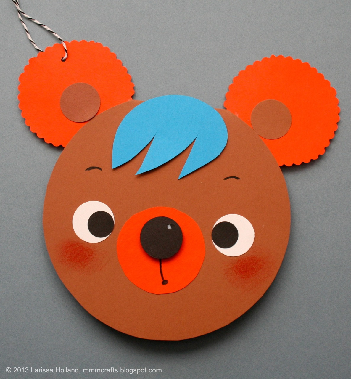 16) Punch a 1/8 inch hole in one of the pigtails for tying with string if this will be functioning as a gift tag. Write a birthday message on the inside of the card.