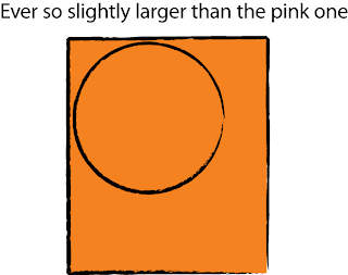 4) Widen the compass ever so slightly and draw another circle that's just a tiny bit bigger than the pink one on orange card stock.